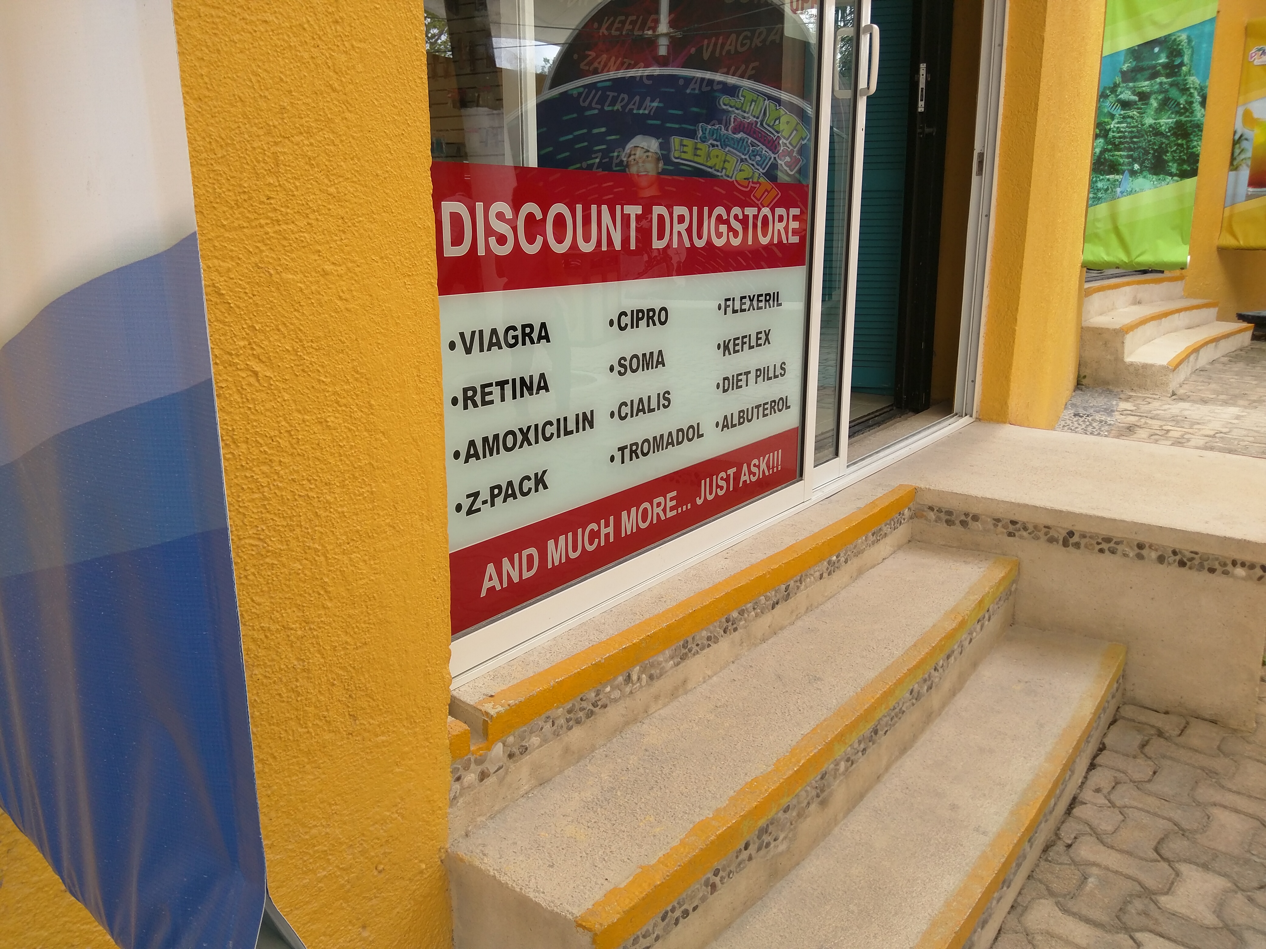 If you can picture neon bristol-board cut in the shape of starbursts containing promos for ‘Advair $40 USD’ or ‘Testosterone Gel $25 USD’ surrounding the deal of the day: 30 pills of Viagra for only $60 USD! It resembled my 5th-grader’s recent poster project, but instead of facts about her great-grandfather, it features a smattering of schedule 1 drugs (in Canada) alongside the word cheap and every other entry you’d find in a pocket thesaurus. While patrons milled about looking for typical convenience-store items, one of the employees (pharmacists?) would occasionally yell out, ‘We have Xanax and Ativan. Step right up!’ We’re so used to restricting or limiting access to potentially addictive medications, it’s so odd to see them pushed in this manner. No relationship, no assessment, little (if any) documentation, all for incredibly low prices!