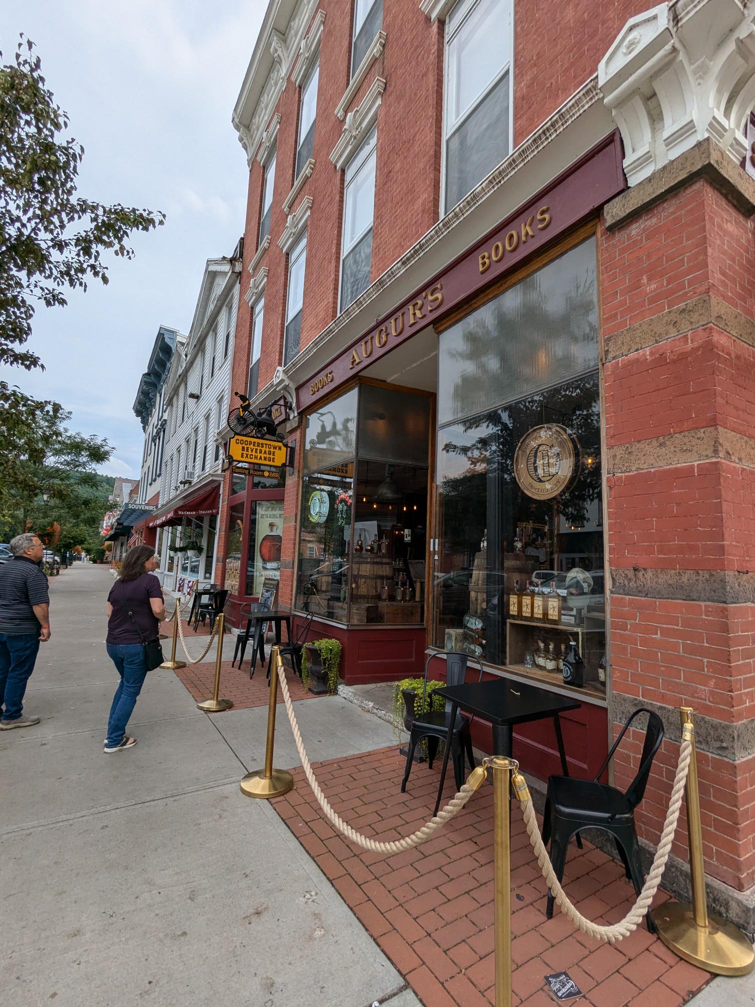 You generally approach the town from the south. During peak times of year when parking is at a premium, it is recommended that you park on the hill above and take the Cooperstown Trolley about 2 km. We decided to chance it and managed to find a meter close to town hall. As you can imagine, baseball is everywhere; all gifts shops and restaurants have baseball-themed items adorned on walls and displays. In the photo below left, we see yet another obstacle smack in the middle of an intersection blocking our view of Mickey’s Place, a clothing store named after Mickey Mantle, a Yankee Hall of Famer. Below right, residing in the old Augur’s Books location, is the Cooperstown Beverage Exchange and Tasting bar. We had a couple of drams of their whiskey lineup, with the Cooperstown Select Straight Bourbon Whiskey Single Barrel being the favourite. Naturally, they too have jumped on the baseball train, with a series of exclusive decanters!