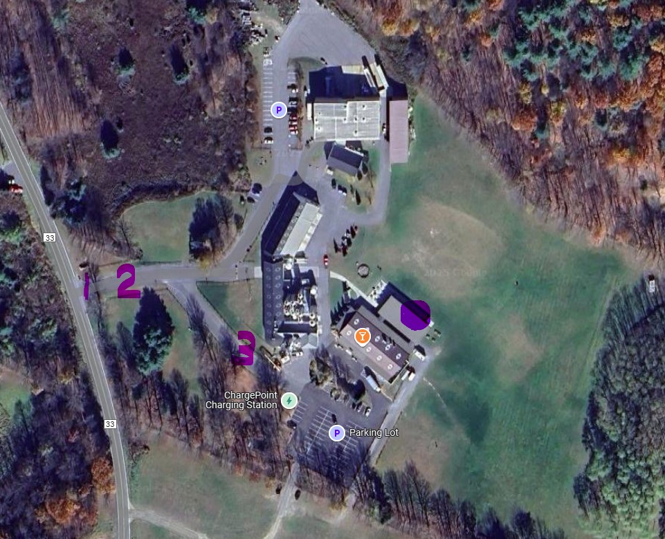 This brewery however is not so old; established in 1997, it has grown enormously and has begun exporting its Belgian ales to almost every state, Canada, and overseas. The complex is sprawling. I have included some pictures and an accompanying birds-eye view with numbered vantage points for each. The large purple dot is the outdoor dining area off the taproom. The field out back has a disc-golf course, and during the summers, will offer camping and live concerts.