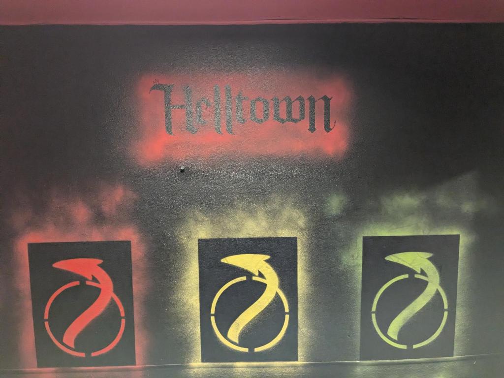 The sides of the next two buildings are full murals! In the second example, you would swear the left hand corner pillar and windows are real. The wet grounds divulge the fact the rains were still swirling; sans umbrella, we didn’t get the chance to properly stop and fully study these works of art.
